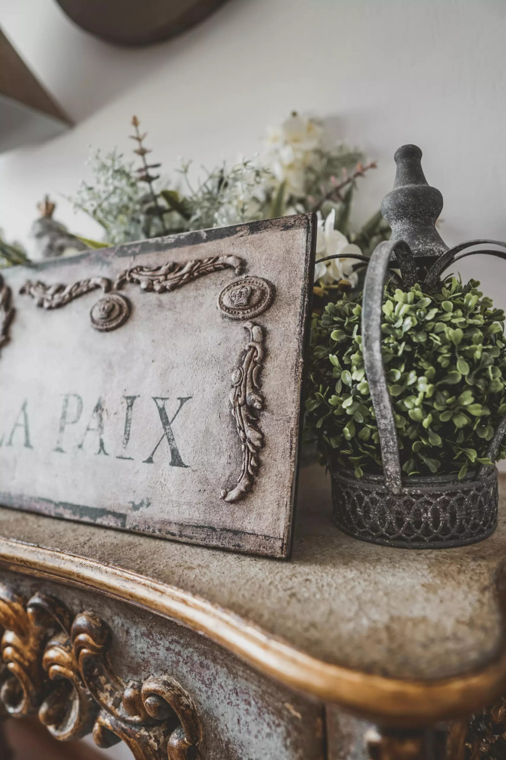 Ozdobny panel ścienny zdobiony unikatowymi dekorami. Efektowne patyny nadały mu charakter starego, wręcz antycznego looku. Swoim wyglądem, idealnie wpasuje się nie tylko we wnętrza w stylu starofrancuskim, ale będzie również pięknie się prezentował w towarzystwie nowoczesnych mebli i dekoracji.