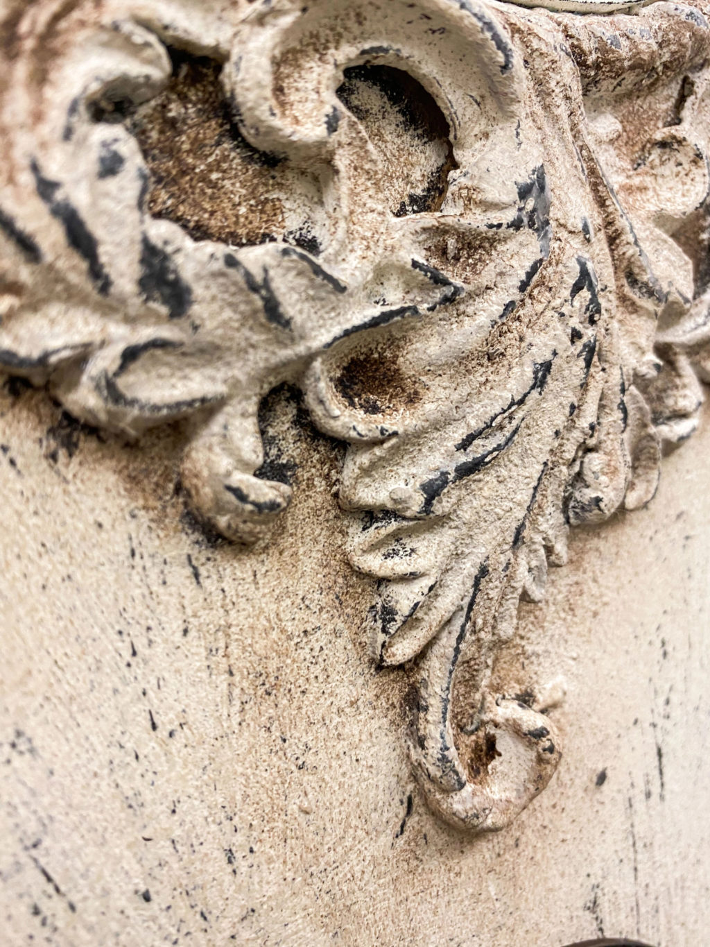 Elegancki komplet postarzanych świeczników w grafitowo kremowym kolorze. Wykonany na drewnie sosnowym przy użyciu ekologicznych farb kazeinowych, wykończone woskiem pszczelim lub woskiem carnauba.