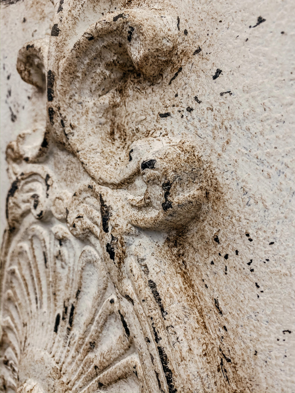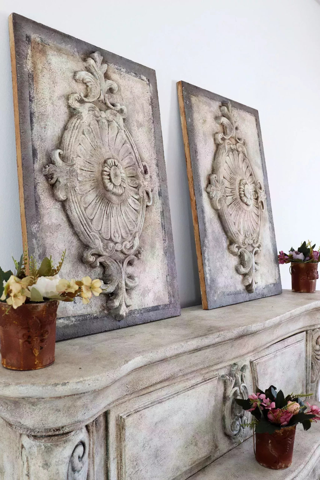 Elegancki panel ścienny w grafitowo kremowym kolorze. Wykonany na płycie drewnopodobnej przy użyciu ekologicznych farb kazeinowych, wykończone woskiem pszczelim lub woskiem carnauba. Dodatkowym elementem dekoracyjnym jest pięknie rzeźbiony dekor.