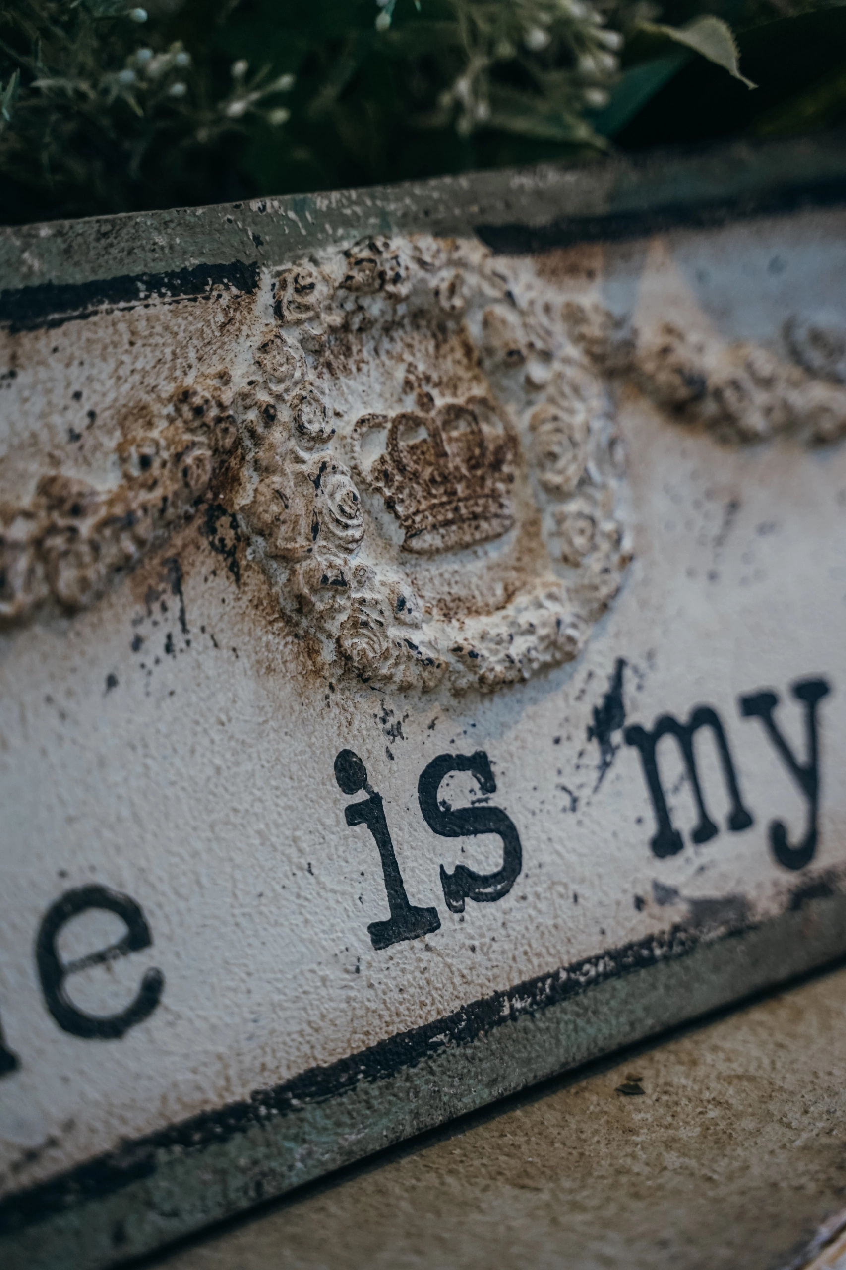 DEKORACJA ŚCIENNA, SZYLD OLIWKOWY Z NAPISEM MY HOME IS MY CASTLE 80X20 CM